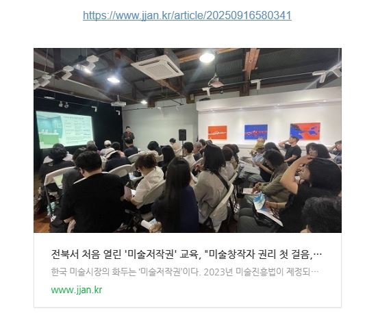 미술가를 위한 미술분야 저작권 교육이 전북권역에서 처음으로 전주 교동미술관에서 열렸습니다.